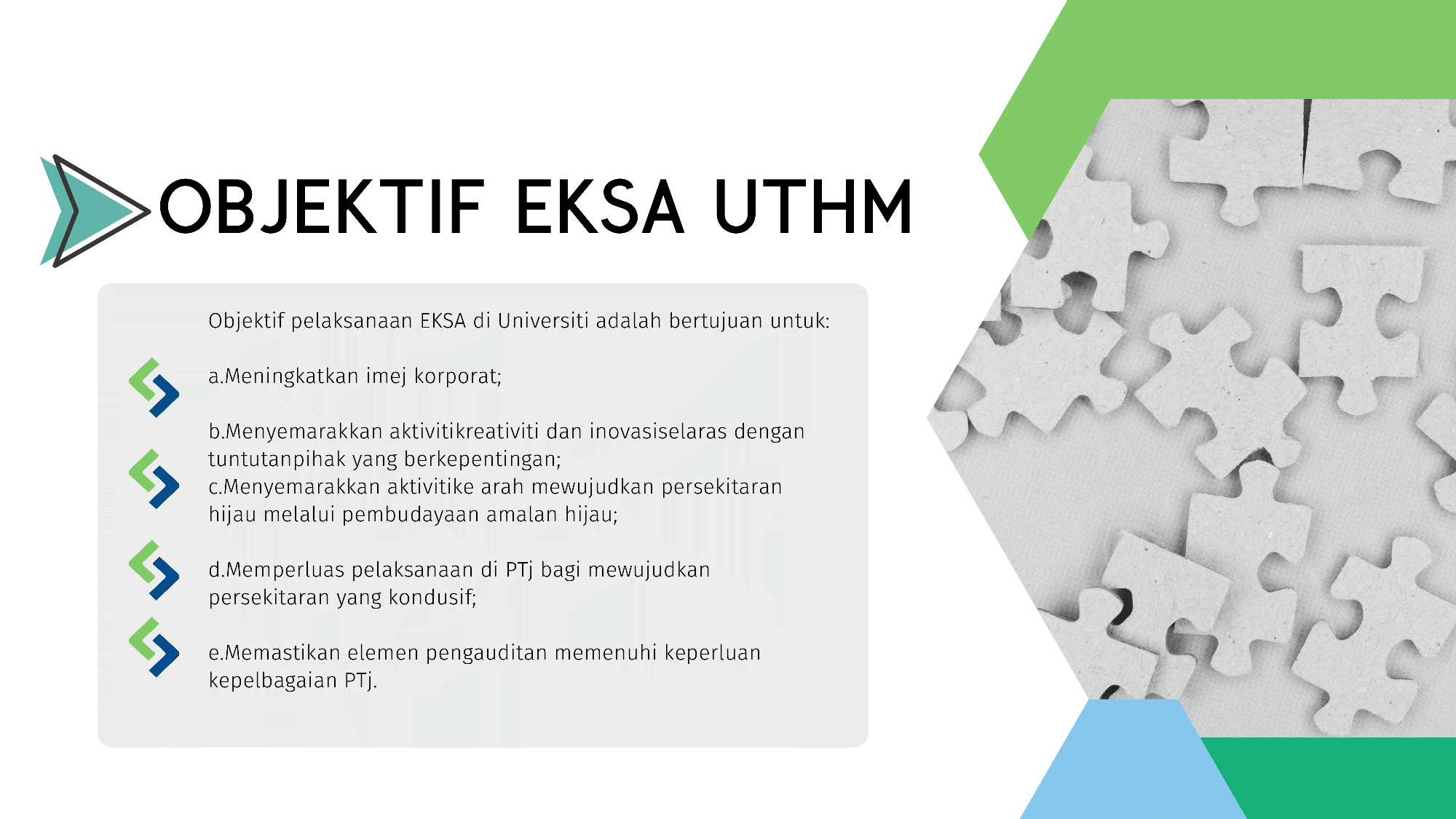 EKSA mempertimbangkan keperluan untuk mewujudkan persekitaran tempat kerja yang lebih sistematik, selesa dan kondusif, supaya lebih relevan dalam konteks universiti. Penambahbaikan ini juga seiring dengan perubahan dan kehendak semasa untuk meningkatkan prestasi dan daya saing universiti di samping memupuk budaya kreatif dan inovatif dalam kalangan warga UTHM.